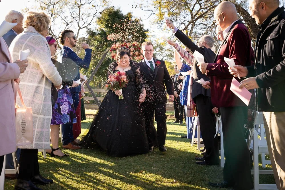 We want the confetti to rain down, we don’t want the guests throwing it straight at you. That leads to closed eyes and outright grimacing, when we most want your faces to be full of joy.